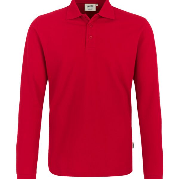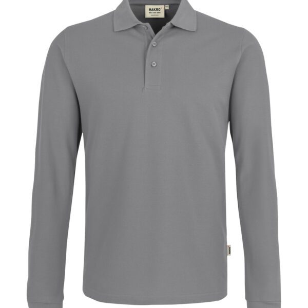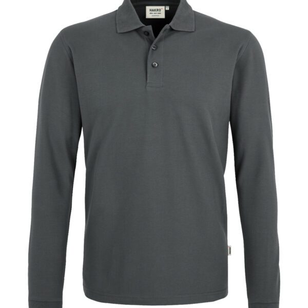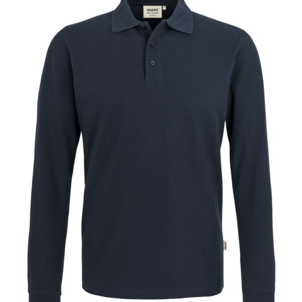 Klassisches langärmeliges Poloshirt mit hochwertig verarbeiteter 3-Loch-Knopfleiste mit extra haltbar angenähten, bruchsicheren Knöpfen, Ton in Ton mit gelasertem HAKRO Schriftzug. Mit Ersatzknopf, Nackenband und doppelt geriegelten Seitenschlitzen. Die Rippstrickbündchen an den Ärmeln sind durch den LYCRA®-Anteil besonders formstabil. Hergestellt aus feinmaschigem Piqué aus langstapeliger, gekämmter und ringgesponnener CmiA-Baumwolle.
