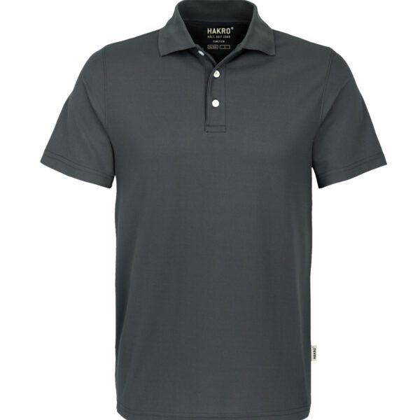 Funktionelles Poloshirt mit hochwertig verarbeiteter 3-Loch-Knopfleiste mit extra haltbar angenähten, bruchsicheren Knöpfen in der Kontrastfarbe weiß mit gelasertem HAKRO Schriftzug. Mit Ersatzknopf und Nackenband. Hergestellt aus feinmaschigem Piqué aus COOLMAX® PRO – einer Funktionsfaser für extreme Belastungen. Temperaturregulierend durch schnellen Transport der Feuchtigkeit an die Textilaußenseite, wo sie sofort verdunsten kann; atmungsaktiv, pflegeleicht und schnelltrocknend. Gedrucktes HAKRO Necklabel für höchsten Tragekomfort und gewebtes HAKRO Flaglabel an der linken Seitennaht.