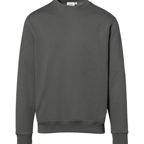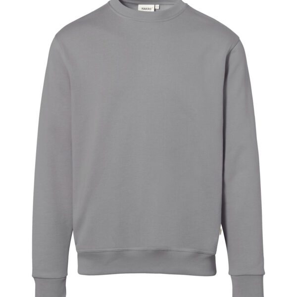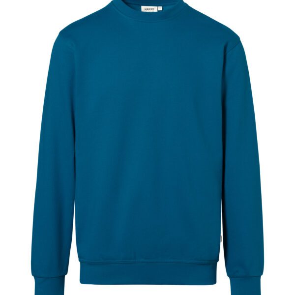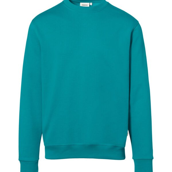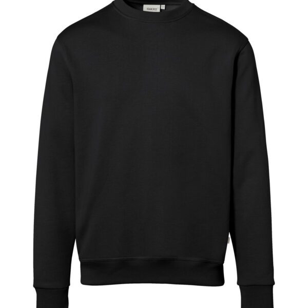 Klassisches Sweatshirt mit rundem Halsausschnitt, formstabilen Bündchen mit LYCRA®-Anteil, flauschig angerauter Innenseite und Nackenband. Hergestellt aus pflegeleichter Baumwoll-Polyester-Mischung für höchste Ansprüche. Gewebtes HAKRO Necklabel aus hochwertigem Kettsatin mit weichen, ultraschallgeschnittenen Bandkanten für höchsten Tragekomfort und gewebtes HAKRO Flaglabel an der linken Seitennaht.