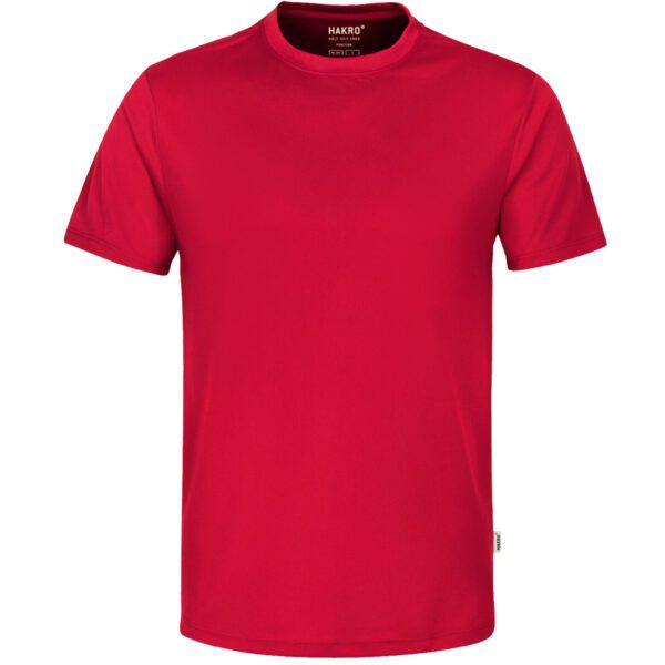 Funktionelles T-Shirt mit rundem Halsausschnitt, verlängertem, abgerundetem Rückenteil und Nackenband. Hergestellt aus COOLMAX® PRO – einer Funktionsfaser für extreme Belastungen. Temperaturregulierend durch schnellen Transport der Feuchtigkeit an die Textilaußenseite, wo sie sofort verdunsten kann. Gedrucktes HAKRO Necklabel für höchsten Tragekomfort und gewebtes HAKRO Flaglabel an der linken Seitennaht.