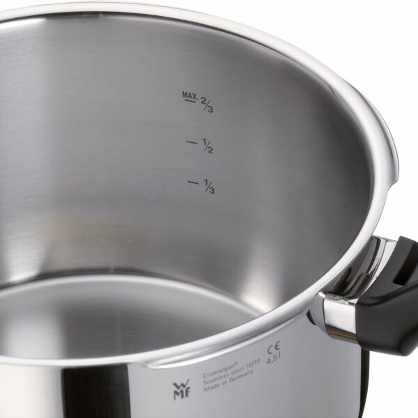 Bevor Sie den Schnelltopf das erste Mal benutzen, sollten Sie sich mit den Hinweisen in der Bedienungsanleitung vertraut machen. Beachten Sie unbedingt die Hinweise zu den Füllmengen. Zur einfachen Dosierung haben alle WMF Schnelltöpfe eine Innenskalierung. Reduzieren Sie die Energiezufuhr sobald die erforderliche Kochstufe erreicht ist. Überprüfen Sie regelmäßig den Dichtungsring auf Verschleiß und tauschen Sie ihn alle zwei Jahre aus.
